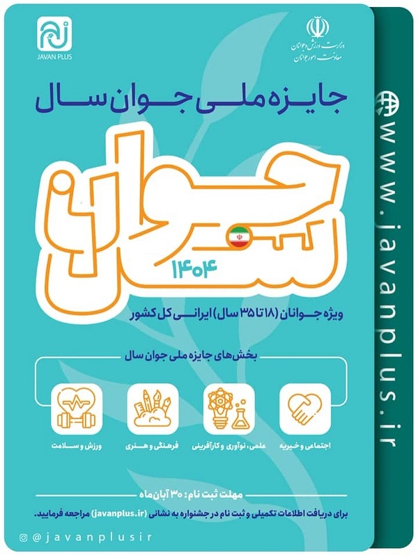 جایزه ملی جوان ۱۷ آبان ۱۴۰۴ | ۱۳:۲۴ کد : ۵۶۱۱۵ اطلاعیه ارسال به دیگران نام شما ایمیل شما ایمیل دریافتکننده ارسال انصراف تعداد بازدید:۷۱۷ جایزه ملی جوان سال ۱۴۰۴ فراخوان شرکت در جایزه ملی جوان سال ۱۴۰۴ منتشر شد.
